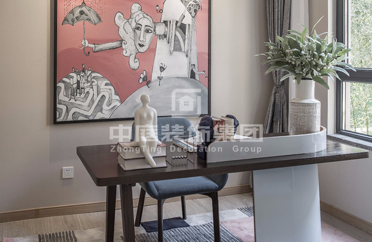 書房的書桌最好靠近窗邊。為避免閱讀造成眼睛疲勞,可考慮采用色度較接近柔和晨光的、不閃爍穩定的燈具,以減輕視覺負擔。