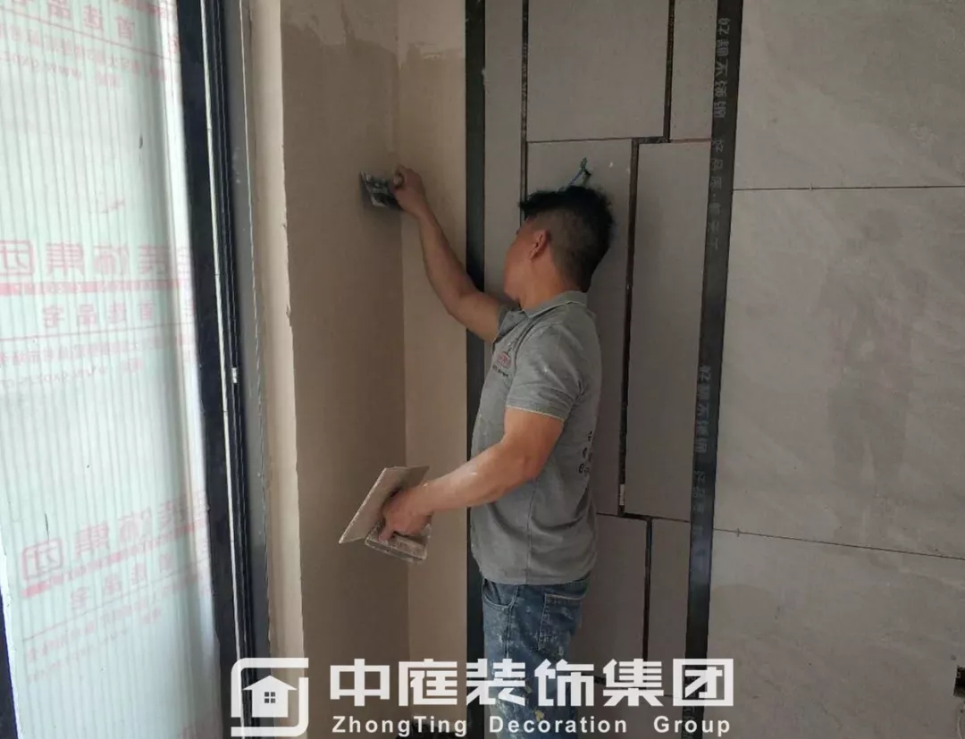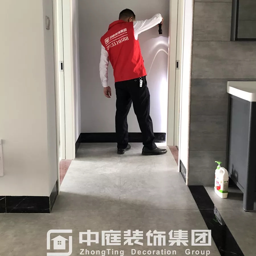 檢查瓷磚鋪貼的平整度是否達到集團施工標準