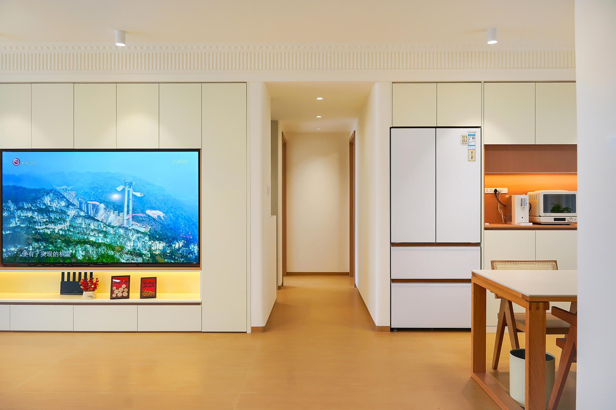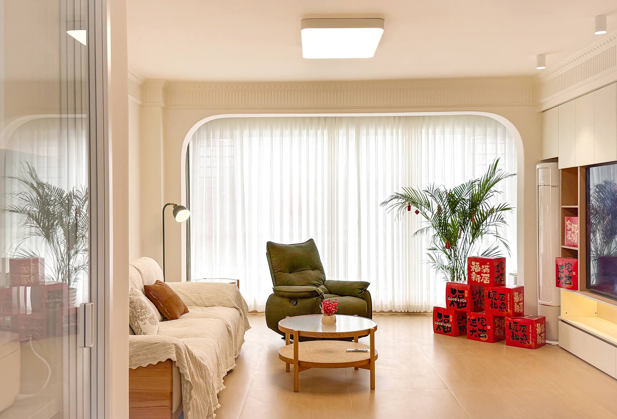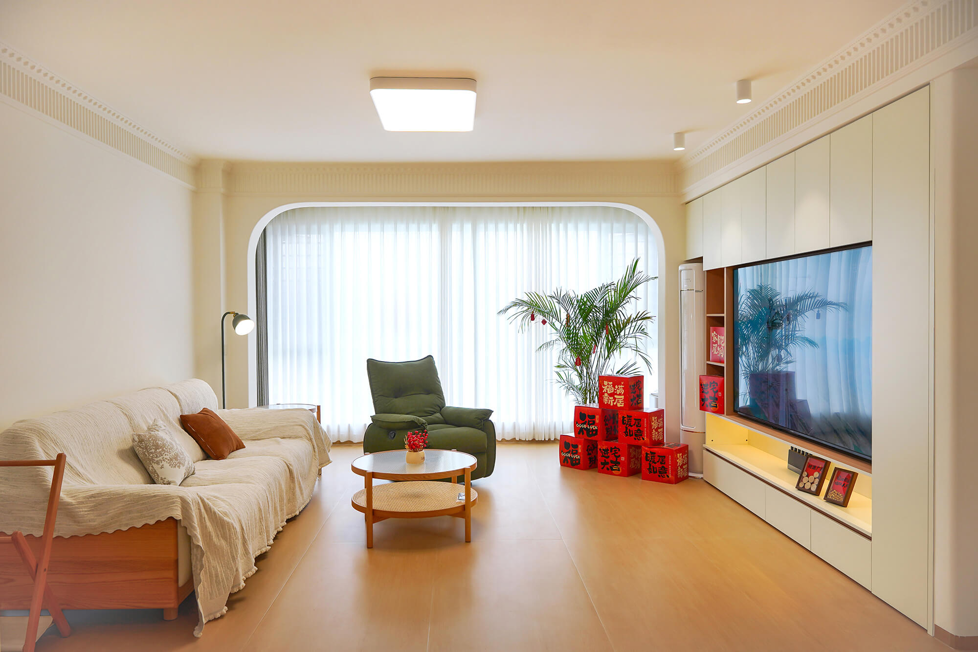 主打 “自然治愈”,以實木板材為核心元素,保留木材天然紋理與溫潤觸感。色彩以原木色為基底,搭配白、米、淺灰等柔和色調,搭配棉麻、藤編等自然材質,減少復雜造型,強調空間通透感,傳遞質樸、放松的居家氛圍。