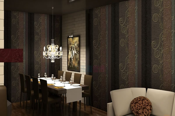 經常能在賓館、飯店還有一些娛樂的場所看到這種金屬壁紙,這是一種在基層上涂布金屬膜制成的墻紙,這種墻紙構成的線條異常壯觀,會給人有一種立體感,體現(xiàn)的是一種金碧輝煌、莊重大方的感覺。并且其耐性抗性好,所以一般適用于公共場所,而且易適用于氣氛熱烈的場所。
